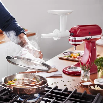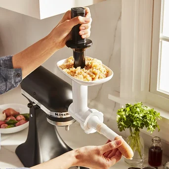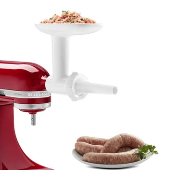 Dwie nadziewarki do kiełbas, które pasują tylko do nowej maszynki do mięsa z tworzywa 5KSMFGA (maszynka ta jest także jednym z elementów zestawu przystawek (5KSM2FPPC).