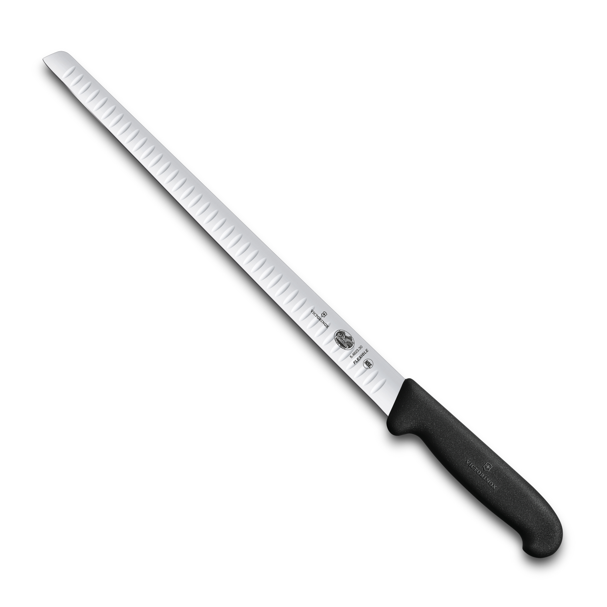 Nóż elastyczny 30cm Fibrox przeznaczony jest do krojenia łososia wędzonego na cienkie plastry, filetowania dużych ryb, obróbki produktów rybnych oraz krojenia szynki parmeńskiej i innych wędlin dojrzewających.