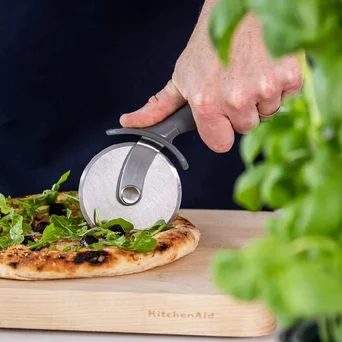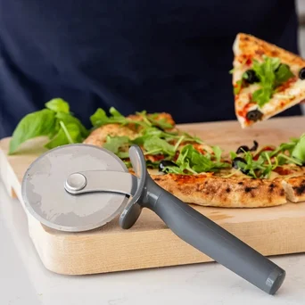 Stalowe radełko do pizzy wykonane z grubej stali nierdzewnej. Wyposażone w ostrze jednostronnie ostrzone z grubej stali nierdzewnej, które doskonale tnie na kawałki pizzę na cienkim i na grubym cieście. Osłona chroniąca palce i ergonomiczny uchwyt. Można myć w zmywarce.