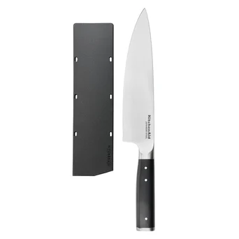 Noż Szefa Kuchni z ostrzem o długosci 20 cm wykonanym z utwardzonej wysokowęglowej japońskiej stali to uniwersalne narzędzie każdego kucharza. Wyposażony w wygodną rękojeść z twardego i trwałego tworzywa z potrójnym nitowaniem. W zestawie z nożem znajduje się osłonka zabezpieczająca ostrze. Można myć w zmywarce, ale zalecane jest mycie ręczne by na dłużej zachować właściwości tnące ostrza i estetykę samego noża.