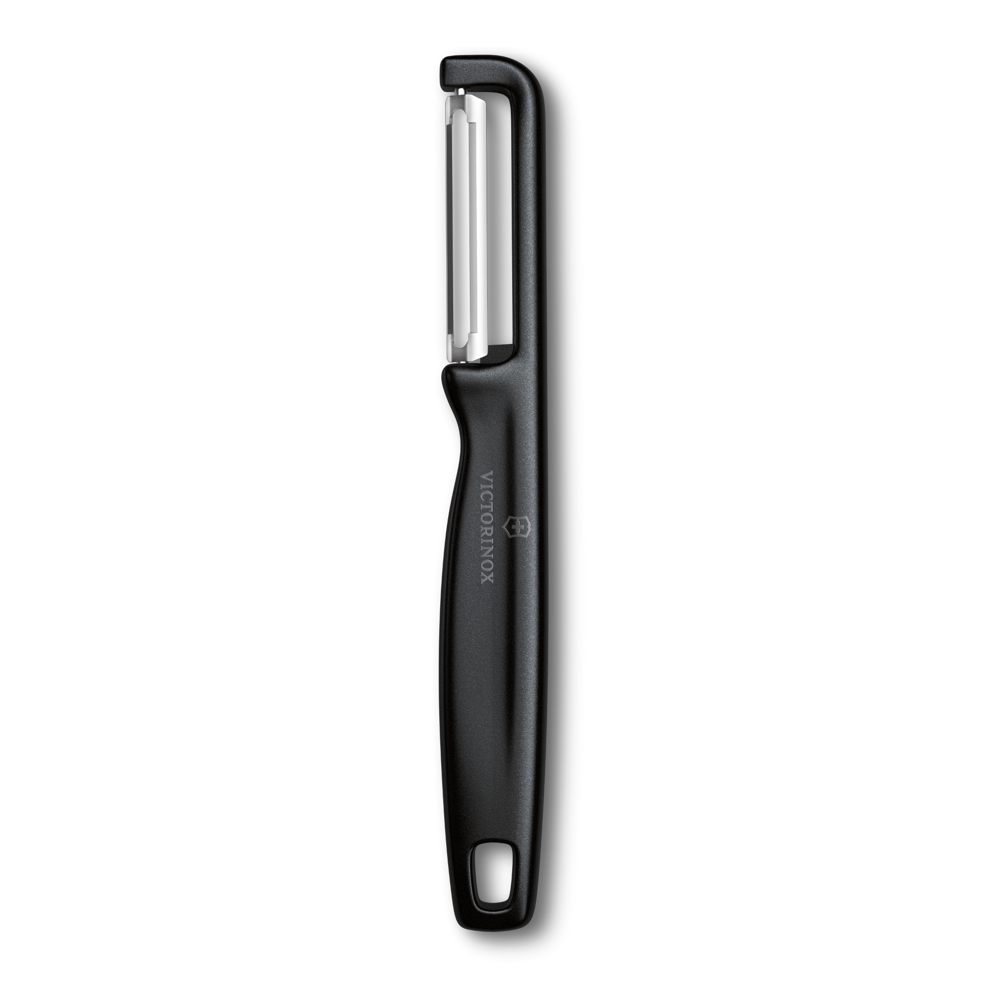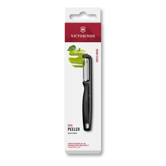 Ruchome dwustronne ostrze dopasowuje się do kształtu produktu ułatwiając obieranie. Nadaje się dla prawo i leworęcznych użytkowników.