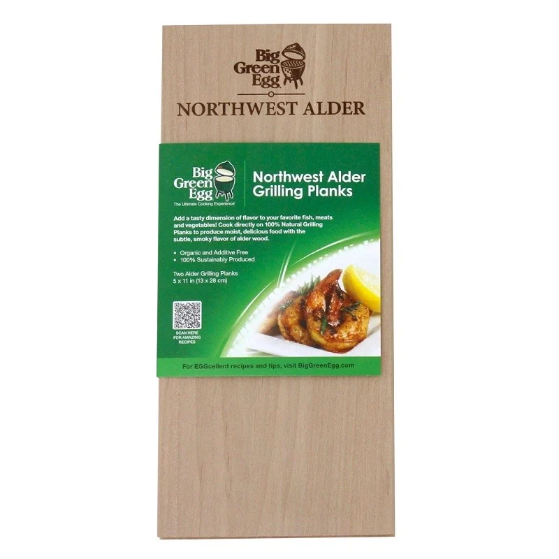 Olchowe deski do grillowania (Wooden Grilling Planks Big Green Egg) wprowadzają zupełnie nowy wymiar wędzenia na kamado. Namoczoną deskę układa się bezpośrednio na ruszcie, a składniki umieszcza się na jej powierzchni. Pod wpływem ciepła deska paruje i tli się, otulając składniki delikatnym aromatem drewna i nadając im niepowtarzalny smak.