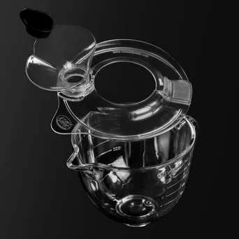 System eliminuje niepotrzebne otwory. Otwór do dodawania składników zamyka się szczelnie dzięki specjalnej gumowej zatyczce – ochrona przed rozpryskami i kurzem. - Wyjmowany lejek