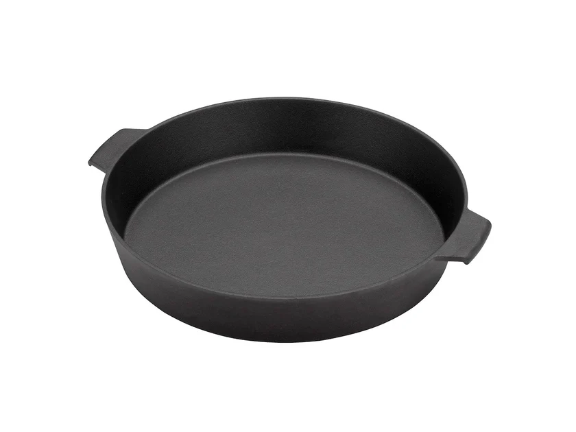 Żeliwna patelnia (Cast Iron Skillet Big Green Egg) sprawdza się zarówno podczas szybkiego smażenia, jak i wielogodzinnego duszenia na kamado. Żeliwo doskonale pochłania i równomiernie rozprowadza ciepło – niezależnie od tego, czy przysmażasz stek, przygotowujesz gulasz, zapiekankę ziemniaczaną czy deser.
