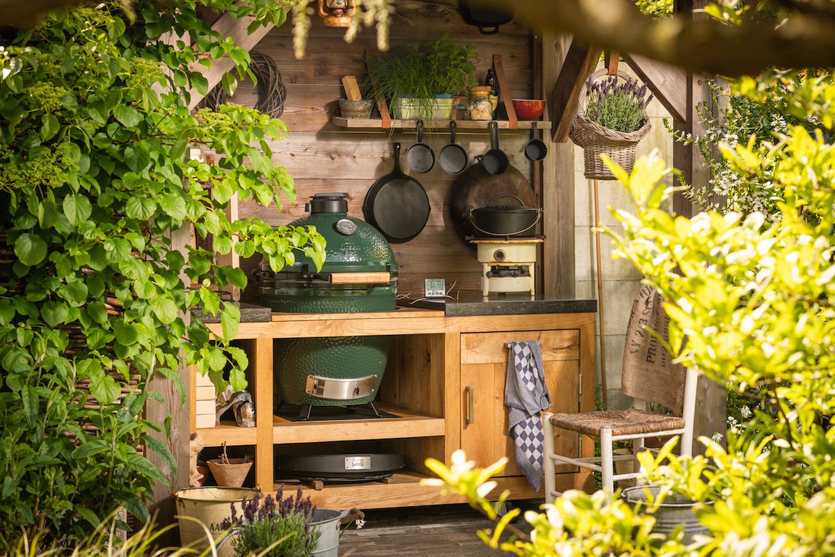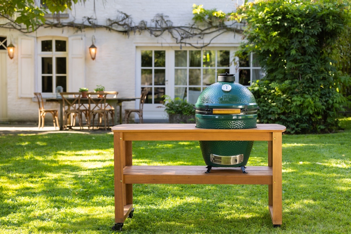 Podstawa na stół pełni kluczową rolę w prawidłowym montażu Big Green Egg. Umieszcza kamado na odpowiedniej wysokości, jednocześnie chroniąc blat lub stół przed uwalnianiem ciepła poprzez zapewnienie odpowiedniego przepływu powietrza pod urządzeniem. Dzięki temu Big Green Egg można bezpiecznie zintegrować z drewnianymi blatami roboczymi lub samodzielnie wykonanymi kuchniami ogrodowymi.