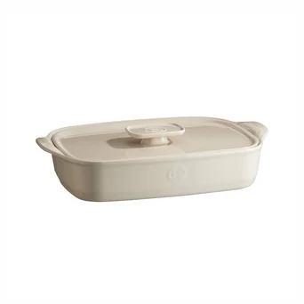 Ceramiczna pokrywa 30,5 x 22 cm Emile Henry zwiększa funkcjonalność naczynia ceramicznego prostokątnego EH-022050. Cienka i płaska pokrywa idelanie dopasowuje się do naczynia. Umożliwia pieczenie wilgotnych potraw. Uchwyt z logo Emile Henry w pokrywie jest płaski i łatwy do chwycenia.