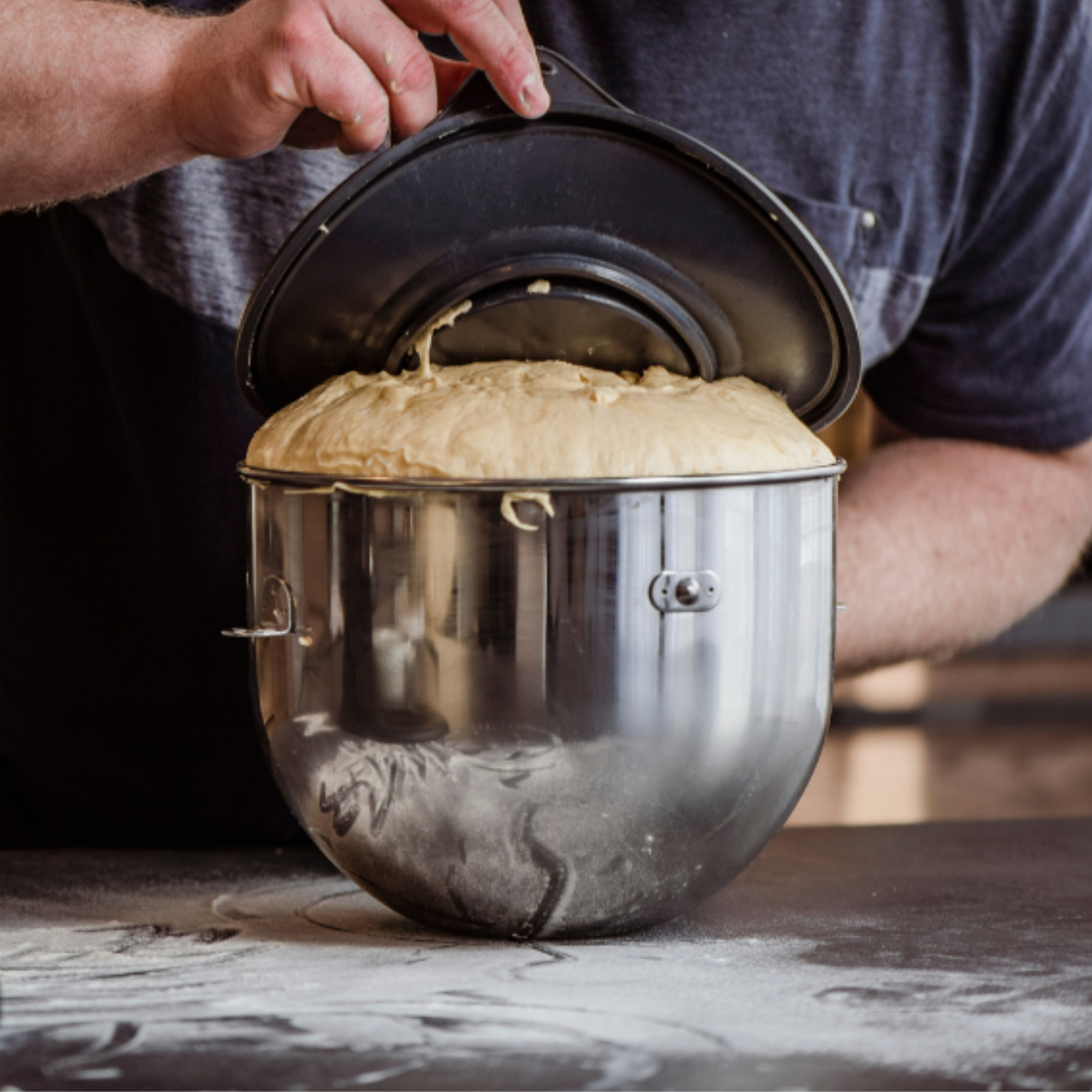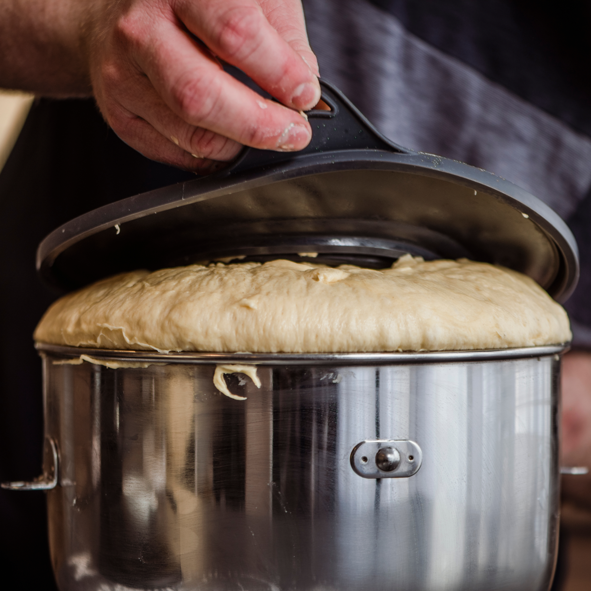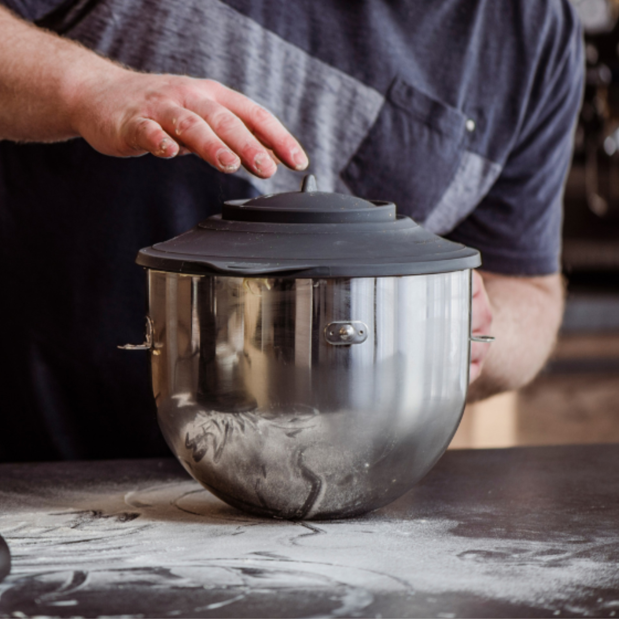 Elastyczna pokrywa silikonowa czarna do mikserów 6,6L Kitty Professional została specjalnie dostosowana do mis stalowych o pojemności 5,2L, 5,6L, 6,6L oraz 6,9L mikserów KitchenAid. Pokrywa idealnie sprawdzi się podczas wyrastania ciasta drożdżowego. Szczelnie zamyka misę, chroniąc zawartość przed wysychaniem. Zawór Airlock, znajdujący się po środku, uwalnia gazy powstające podczas wyrastania ciasta, zapobiegając oderwaniu pokrywy. Wilgoć pozostaje w środku, zapewniając najlepsze warunki do wyrastania.