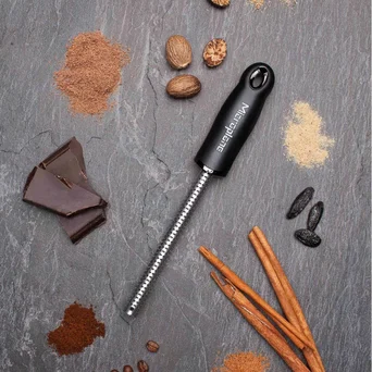 Dzięki ultra ostrym ostrzom tarka doskonale radzi sobie z najtwardszymi produktami, zachowując pełnię aromatu świeżo startych składników. Zaleca się ostrożność podczas użytkowania, szczególnie przy pracy z małymi, śliskimi przyprawami.
