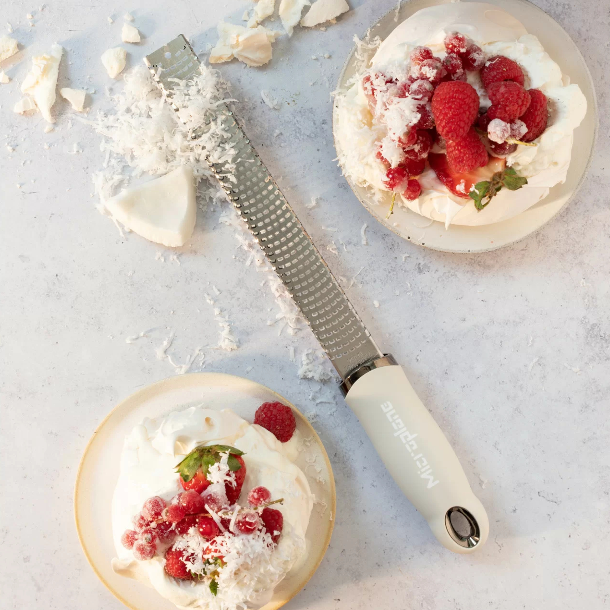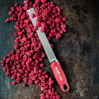 Premium Classic Zester to wszechstronne narzędzie kuchenne, które łączy w sobie funkcje tarki i zestera, doskonale sprawdzając się zarówno w rękach profesjonalnych szefów kuchni, jak i pasjonatów domowego gotowania. Ergonomiczny uchwyt zapewnia wyjątkowy komfort użytkowania, stabilność i bezpieczeństwo. Ostrze ze stali nierdzewnej gwarantuje długotrwałą ostrość. Dzięki niemu nawet najtwardszy parmezan zamienia się w delikatne, koronkowe wiórki.