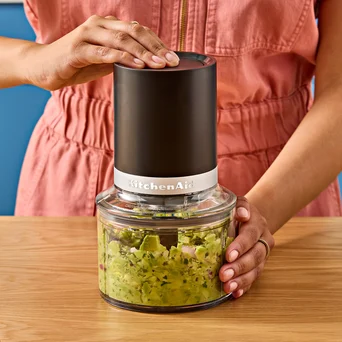 Bezprzewodowy rozdrabniacz KitchenAid Go umożliwia wygodne siekanie i miksowanie składników w dowolnym miejscu, niezależnie od dostępu do prądu.