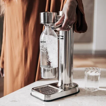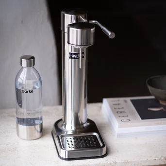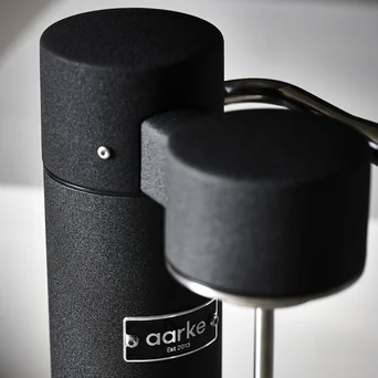Aarke Carbonator 3 to minimalistyczny saturator do wody gazowanej o kompaktowej konstrukcji. Carbonator 3 został zaprojektowany od wewnątrz tak, aby był najmniejszym i najbardziej kompaktowym saturatorem do wody gazowanej. Obudowa została wykonana ze stali nierdzewnej i pozbawiona spawów/łączeń, co zapewnia zarówno formę, jak i funkcjonalność urządzenia.