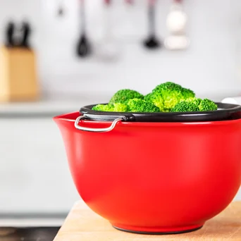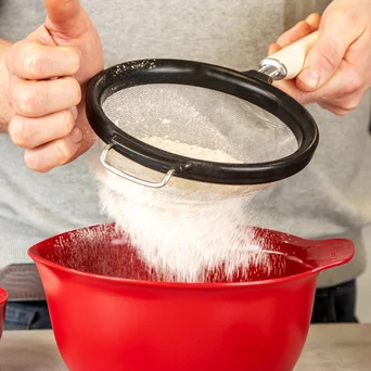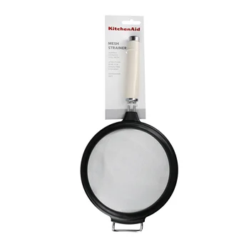 Stalowa sito z drobnymi oczkami do przesiewania i odcedzania, pozwala m.in przesiać mąkę, wypłukać ryż lub odcedzić makaron. Wygodny, długi uchwyt i boczny haczyk do oparcia o krawędź naczynia. Można myć w zmywarce.