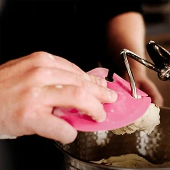 Perfekcyjne dopasowanie do kształtu misy. Dokładne usuwanie ciasta. Maksymalna efektywność czyszczenia.