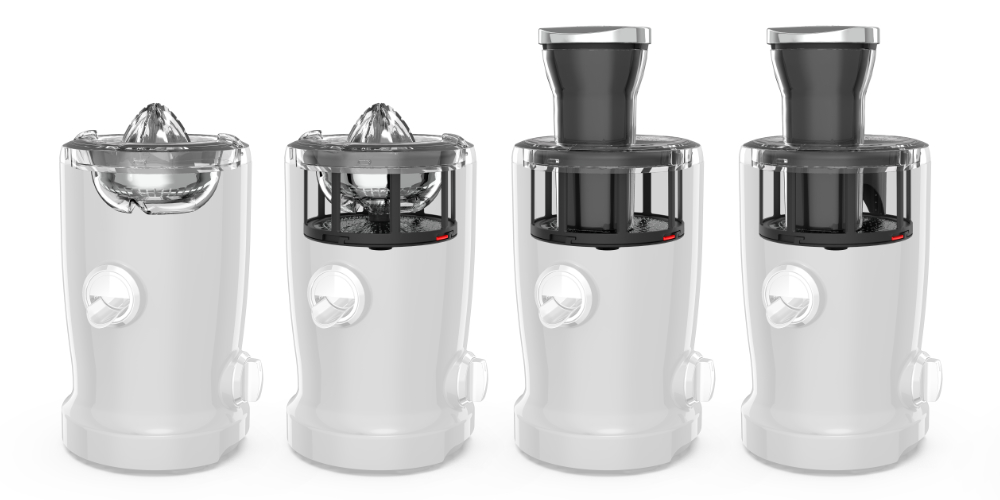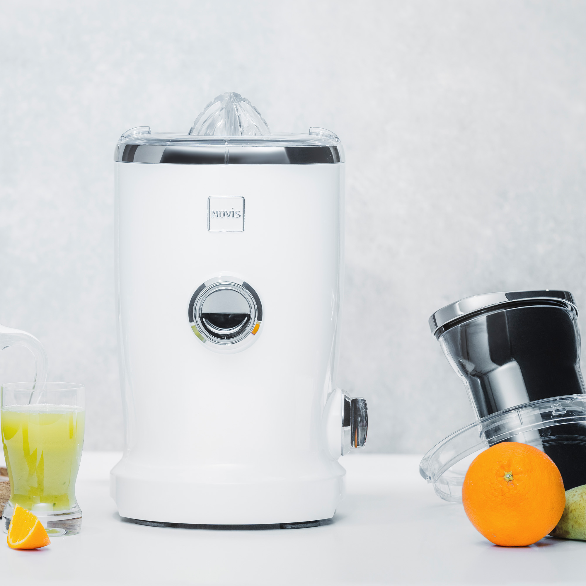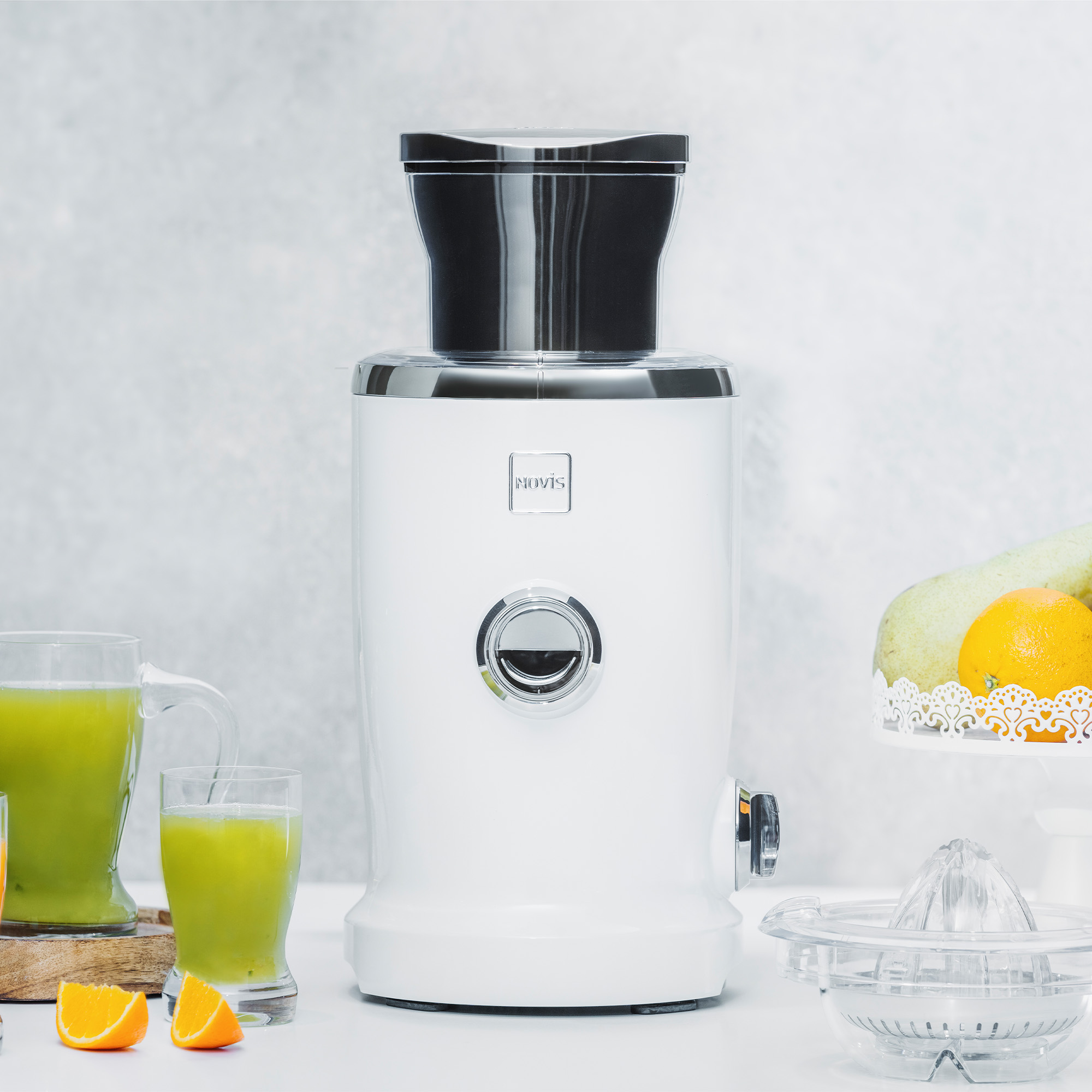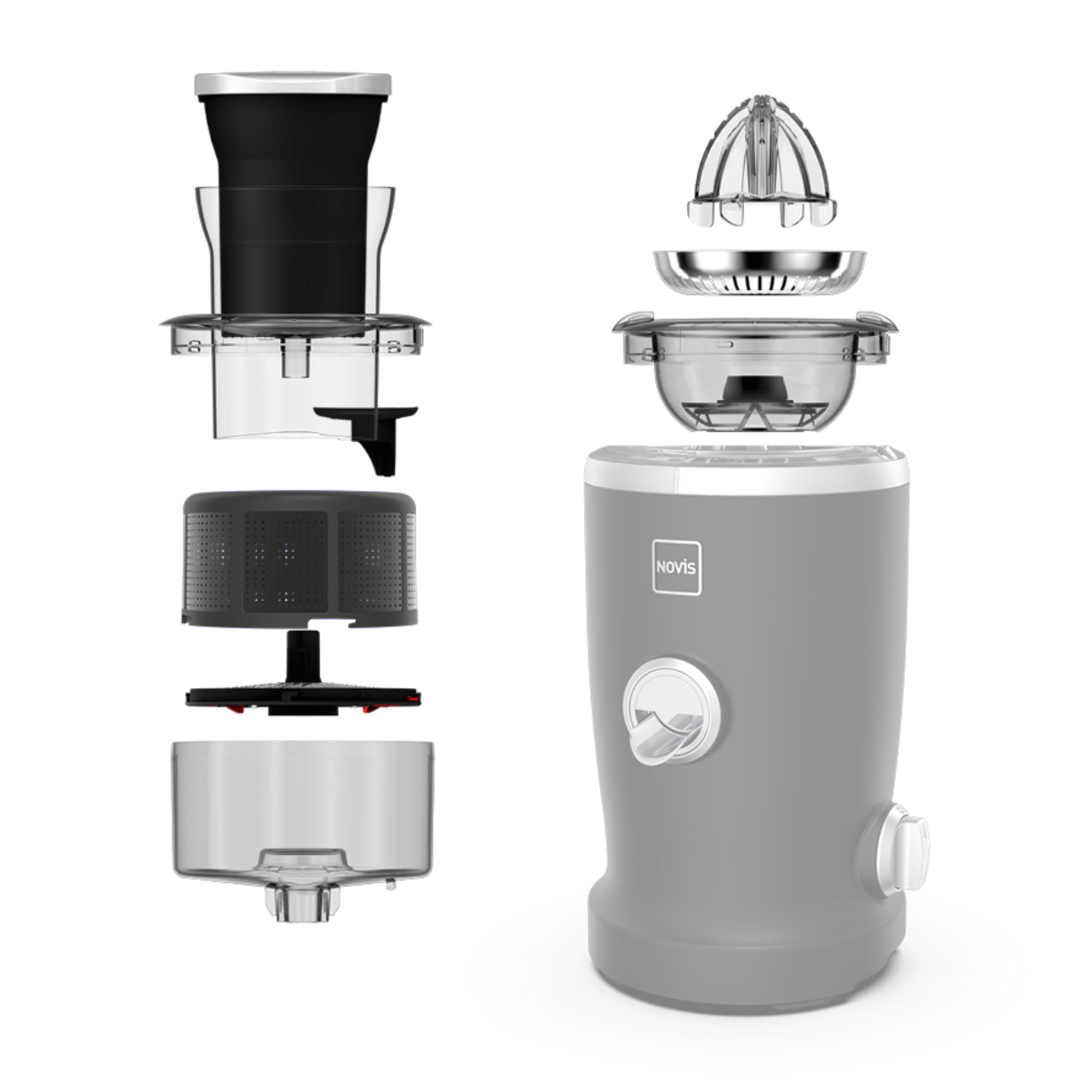 Sokowirówka do soków Novis VitaJuicer NewGen SX-3 - łączy w sobie cztery funkcje w jednym kompaktowym urządzeniu: funkcję wyciskarki do cytrusów, wyciskarki do cytrusów z dodatkiem miąższu, klasycznej sokowirówki i urządzenia do purée z miękkich owoców.