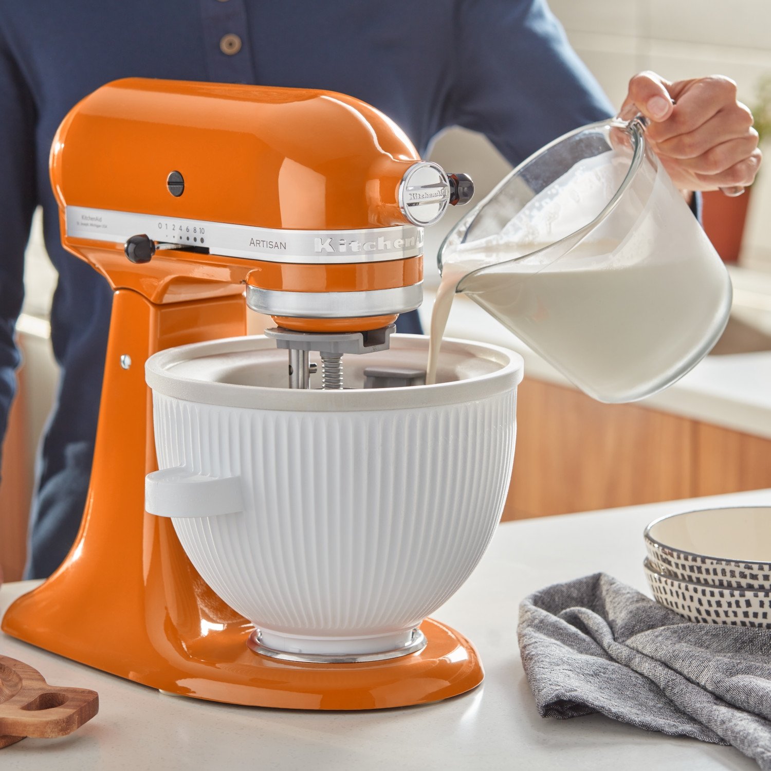 Sorbetiera pasuje do mikserów z uchylną głowicą (Classic, 5KSM95, Artisan 125/175/185/180/195) i z podnoszoną dzieżą (Artisan 5,6L, Artisan 6,6L, Artisan 7, Heavy Duty 5,2L, Heavy Duty 6,6L, Heavy Duty 7 i Professional). Sorbetiera nie współpracuje z modelami Mini (5KSM3311) i Heavy Duty 5 (5KPM5).