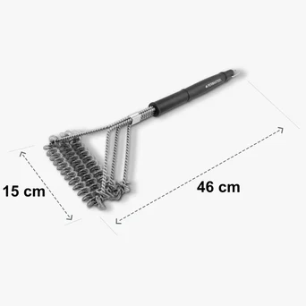 Stalowa szczotka do czyszczenia grilla amerykańskiej marki Permasteel to doskonałe narzędzie pozwalające utrzymać ruszt w idealnym stanie. Włosie nie rdzewieje ani nie łamie się. Szczotka posiada trzy rzędy włosia, które pozwalają skuteczniej czyścić wszelkiego rodzaju grille i ruszty. Długi uchwyt z trwałego tworzywa sztucznego został zaprojektowany z myślą o komforcie użytkowania i nie wyślizguje się z dłoni.