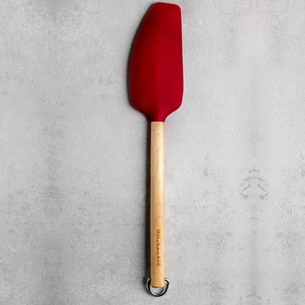 Szpatuła silikonowa o kształcie dopasowanym do dzieży miksera i z rączką z trwałego drewna brzozowego. Idealna do mieszania i zeskrobywania składników ze ścianek misy. Silikon odporny na temperaturę do 260ºC. Bezpieczny dla wszystkich powierzchni. Praktyczna zawieszka ze stali nierdzewnej. Myć wyłącznie ręcznie ciepłą wodą i łagodnym płynem do mycia naczyń.