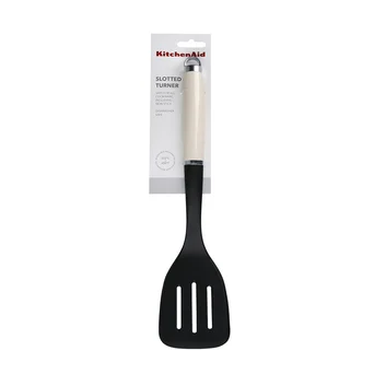 Szpatuła z otworami przydatna podczas smażenia, obracania i nakładania potraw. Odporna na temperaturę do 232°C. Bezpieczna dla naczyń z powłokami nieprzywierającymi. Wyposażona w wygodny uchwyt z uszkiem do zawieszenia. Można myć w zmywarce. Podczas smażenia nie pozostawiać w patelni.