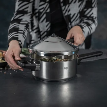 Gotowanie w szybkowarze Duromatic pozwala zaoszczędzić do 70% czasu w porównaniu z konwencjonalnymi naczyniami. Marchewka, która tradycyjnie wymaga 15 minut obróbki termicznej, w Duromatic jest gotowa w zaledwie 4 minuty. Znaczące skrócenie czasu gotowania przekłada się na większą wygodę codziennego użytkowania oraz możliwość przygotowania zdrowych posiłków nawet przy napiętym harmonogramie dnia.