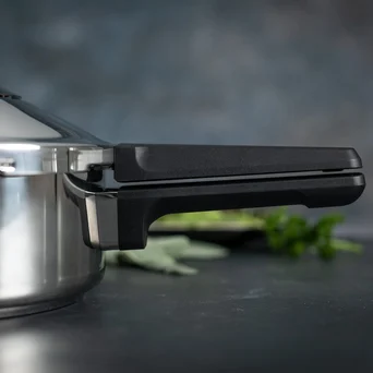 Szybkowar o średnicy 20cm posiada długi uchwyt, który daje większą stabilnośc podczas podnoszenia ciężkiego naczynia.