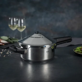 Szybkowar Duromatic Inox 3,5L to efekt ponad 75 lat doświadczenia w produkcji profesjonalnych urządzeń kuchennych. Piąta generacja legendarnego szybkowara, wprowadzonego po raz pierwszy w 1949 roku, łączy sprawdzoną funkcjonalność z nowoczesnym designem i zaawansowanymi rozwiązaniami technologicznymi. Urządzenie zostało zaprojektowane z myślą o użytkownikach ceniących efektywność, zdrowie i odpowiedzialność za środowisko naturalne.