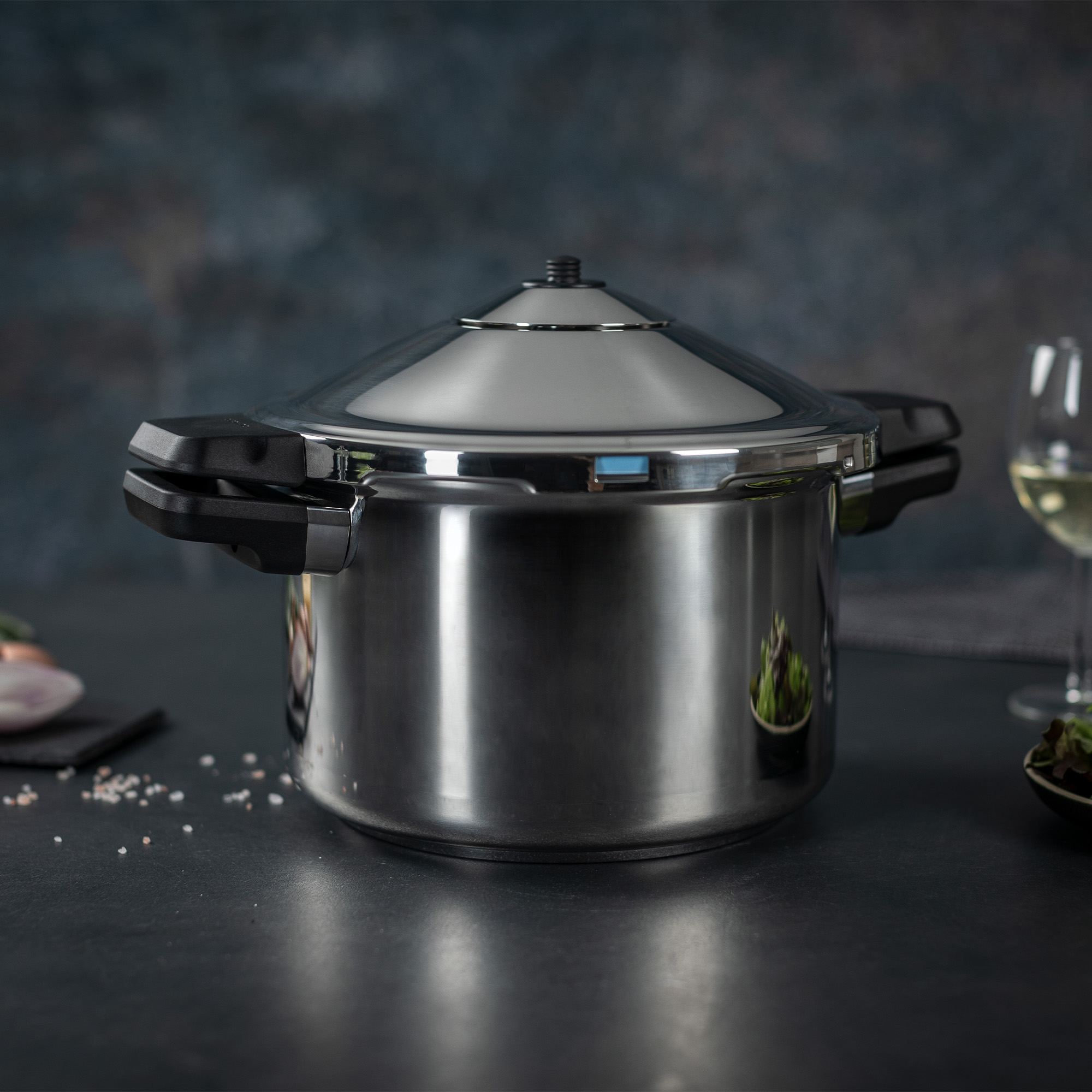 Szybkowar Duromatic Inox 5L to efekt ponad 75 lat doświadczenia w produkcji profesjonalnych urządzeń kuchennych. Piąta generacja legendarnego szybkowara, wprowadzonego po raz pierwszy w 1949 roku, łączy sprawdzoną funkcjonalność z nowoczesnym designem i zaawansowanymi rozwiązaniami technologicznymi. Urządzenie zostało zaprojektowane z myślą o użytkownikach ceniących efektywność, zdrowie i odpowiedzialność za środowisko naturalne.