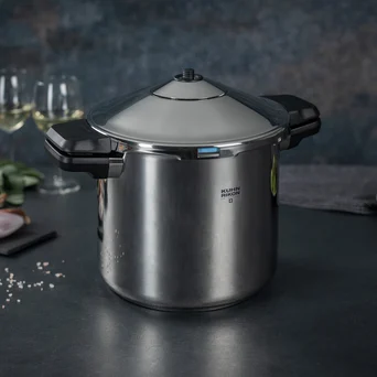 Korpus wykonany ze stali nierdzewnej najwyższej jakości zapewnia odporność na korozję i długotrwałą estetykę. Innowacyjne dno Superthermic z wielowarstwową konstrukcją typu sandwich równomiernie rozprowadza i optymalnie magazynuje ciepło, zapewniając maksymalną efektywność energetyczną. Urządzenie jest kompatybilne ze wszystkimi rodzajami kuchenek, w tym indukcyjnymi.