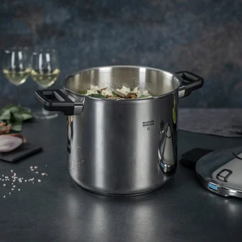 Szybkowar Duromatic Inox 7L to efekt ponad 75 lat doświadczenia w produkcji profesjonalnych urządzeń kuchennych. Piąta generacja legendarnego szybkowara, wprowadzonego po raz pierwszy w 1949 roku, łączy sprawdzoną funkcjonalność z nowoczesnym designem i zaawansowanymi rozwiązaniami technologicznymi. Urządzenie zostało zaprojektowane z myślą o użytkownikach ceniących efektywność, zdrowie i odpowiedzialność za środowisko naturalne.