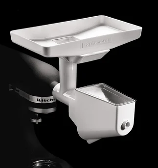 Szeroka tacka o dużej powierzchni, którą łatwo nakłada się na obudowę maszynki do mięsa 5FGA i przecieraka 5FVSFGA. Ułatwia podawanie większej ilości produktów przeznaczonych do mielenia lub przecierania. Nadaje się do mycia w zmywarce.