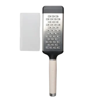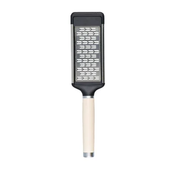 Tarka z dwustronnym ostrzem, idealnym do twardego sera, czekolady, warzyw. Płaskie ostrze ze stali nierdzewnej ściera w obu kierunkach. Ostrość ostrza uzyskiwana w procesie chemicznym zapewnia wieloletnia trwałość. Antypoślizgowa końcówka do wygodnego oparcia tarki na blacie. W zestawie także osłonka na ostrze. Można myć w zmywarce.