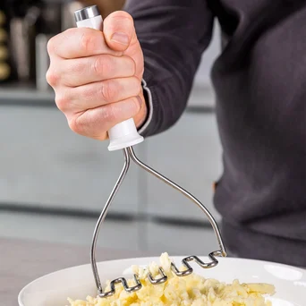 Solidny tłuczek do ziemniaków wykonany ze stali nierdzewnej. Niezastąpiony przy przygotowywaniu puree, a także przeróżnych farszów i domowych posiłków dla niemowląt. Wygodny, profilowany uchwyt zapewniający komfort podczas użytkowania. Można myć w zmywarce.