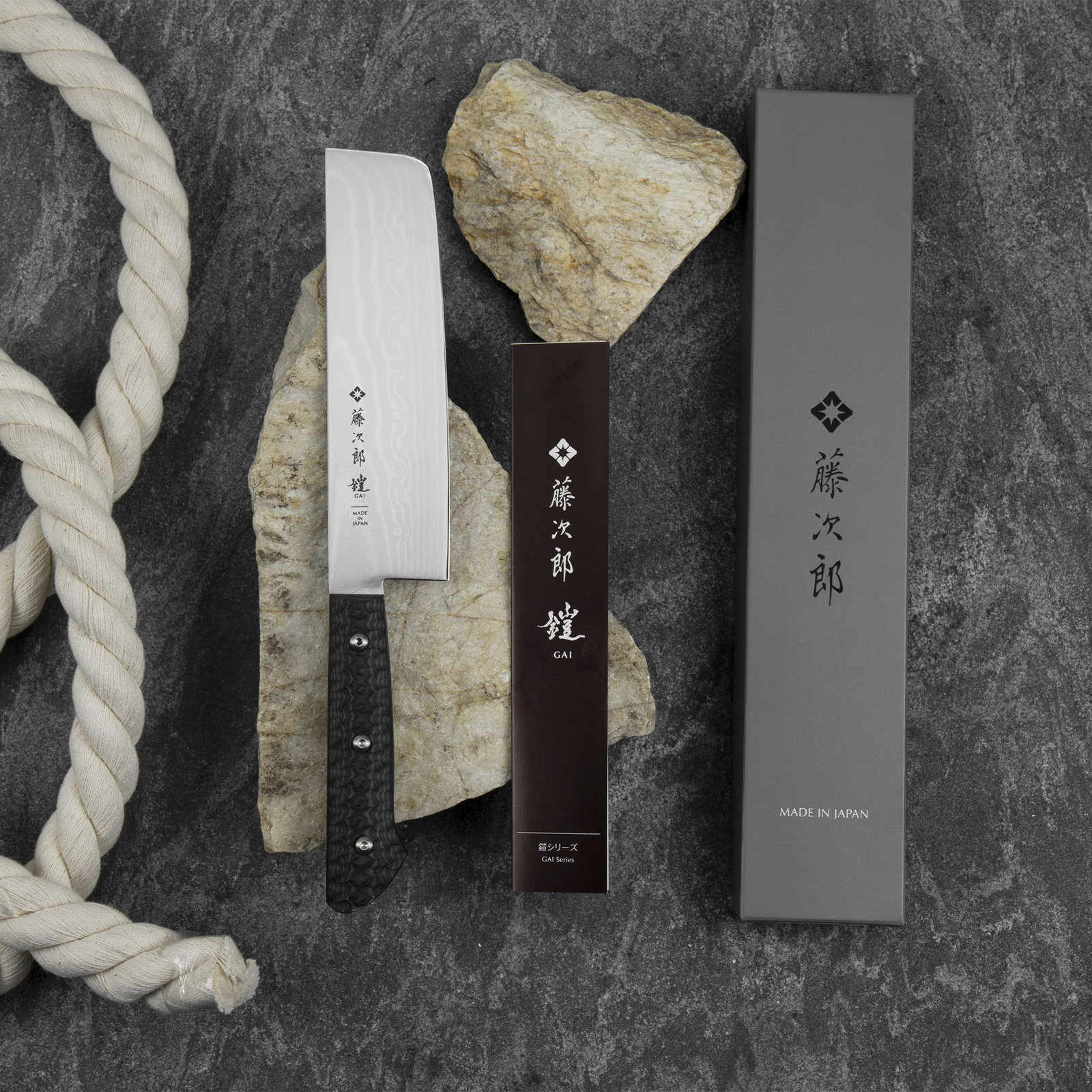 Nazwa "Gai" pochodzi od japońskiego słowa oznaczającego "zbroję", co bezpośrednio nawiązuje do unikalnego designu rękojeści. Rękojeść łączona jest z klingą za pomocą śrub imbusowych sześciokątnych, co nadaje nożom charakterystyczny, industrialny charakter i zapewnia solidne, bezpieczne połączenie. Ten nietypowy system mocowania wyróżnia serię Gai na tle tradycyjnych konstrukcji japońskich