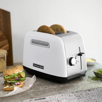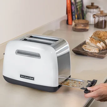 Toster dwukomorowy Classic, to wersja minimalistyczna modelu serii KitchenAid, którego funkcje zostały zredukowane do najbardziej popularnych, czyli opiekania okrągłego pieczywa (bajgli) i pięciu nastawów stopnia zrumienienia. Prosty w użyciu panel sterowania pozwala szybko rozpocząć opiekanie. Bardzo szerokie dwie komory pomieszczą nie tylko kromki chleba, ale także przekrojone na pół bułeczki (bajgle). Dzięki systemowi ich wyśrodkowania w komorach, zarówno cienkie jak i grube kromki będą równo opieczone. Stylowe wykończenie właściwe marce KitchenAid, nie zawiedzie jej fanów. Panel sterowania wykonany ze szczotkowanej stali nierdzewnej, z chromowanym pokrętłem oraz suwakiem windowania kromek i sygnalizacją świetlną, podkreśla elegancję i cieszy oko.