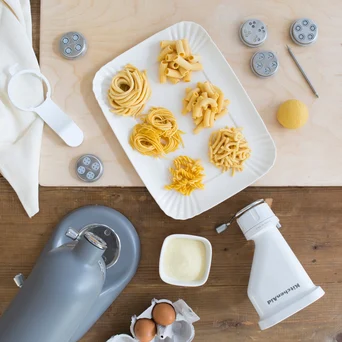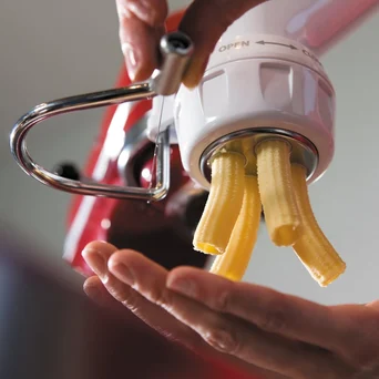 Wyciskarka do makaronu służy do przygotowania świeżego, domowego makaronu o różnych kształtach.