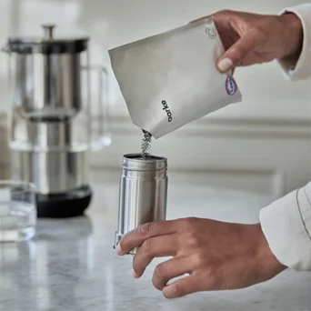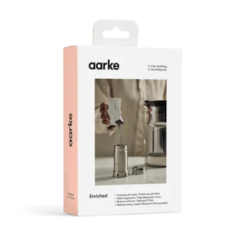 Wzbogacony granulat filtrujący stanowi ulepszoną opcję filtracji z mineralizacją. Oprócz czynienia wody czystszą i smaczniejszą poprzez redukcję chloru i metali ciężkich, dodaje magnez wspierający funkcjonowanie mięśni i przekształca wodę z kranu w wodę alkaliczną przez zwiększenie wartości pH. Stworzony wyłącznie dla technologii dzbanka filtrującego Aarke, granulat z woreczka wsypuje się do napełnialnego wkładu filtrującego Purifier. Wykonany we współpracy z BWT, jedną z wiodących światowych firm technologii wodnych.