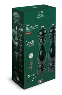 Ekskluzywny zestaw młynków do soli i pieprzu 30cm Big Green Egg (Peugeot Salt and Pepper Mills) został stworzony we współpracy dwóch ikonicznych marek – Peugeot i Big Green Egg. Wykonane są z certyfikowanego drewna bukowego w charakterystycznym kolorze Big Green Egg, z białym logo producenta – doskonałe uzupełnienie każdej kuchni zewnętrznej.