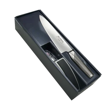 Zestaw Starter: Nóż szefa kuchni G-2 + ostrzałka MinoSharp | Global G-2220GB
