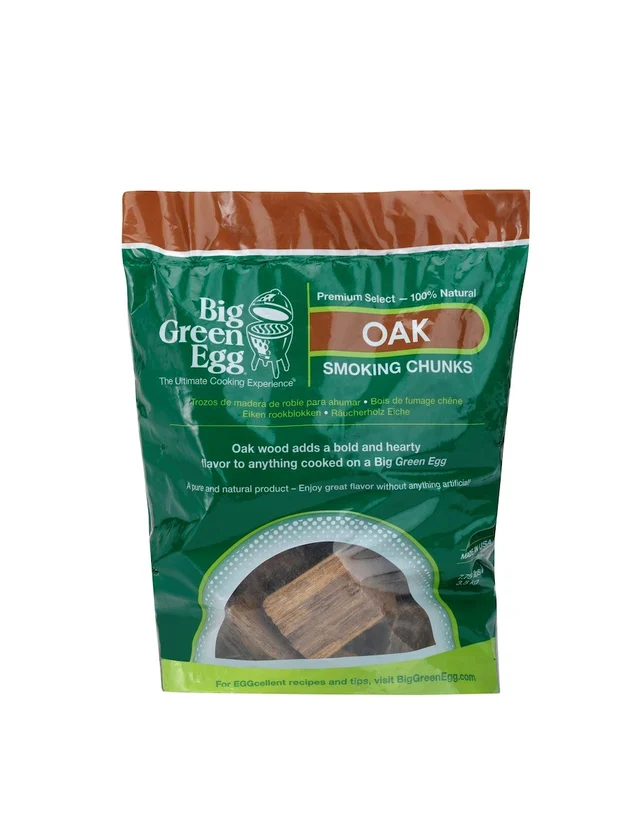 Wood Chunks Big Green Egg – kawałki drewna do długich sesji wędzenia low & slow na kamado. Dostępne w 4 smakach: Hickory, Apple, Oak, Mesquite. Pojemność 9 l.